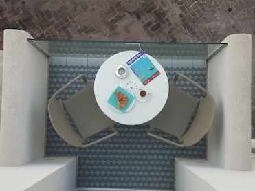 Balata Bianca is a clean, modern, and very comfortable hotel with five guestrooms. It's conveniently located within easy walking distance of the old port and restaurants by the harbor as well as a 10-minute walk to the pedestrian street Via Roma with all of its shops and restaurants. Some of the guestrooms have a small balcony with a view of the harbor. The shower has soothing mood lighting that changes colors. The lovely covered breakfast terrace is on the roof with views of the harbor on one side and Mediterranean Sea on the other side. The full breakfast includes croissants, cakes, cereals, fresh fruit, ham and cheese, yoghurt, fruit juices, coffee, and tea. The hotel even provides its guests with complementary beach umbrellas and beach towels. The staff is very friendly and accommodating. If you are visiting Lampedusa, I absolutely recommend the Balata Bianca! You won't be disappointed.