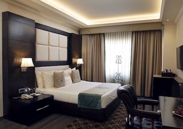 享受完花洒淋浴后,裹上舒适的浴袍。客房配有吧台、遮光窗帘和便捷的 24 小时服务。