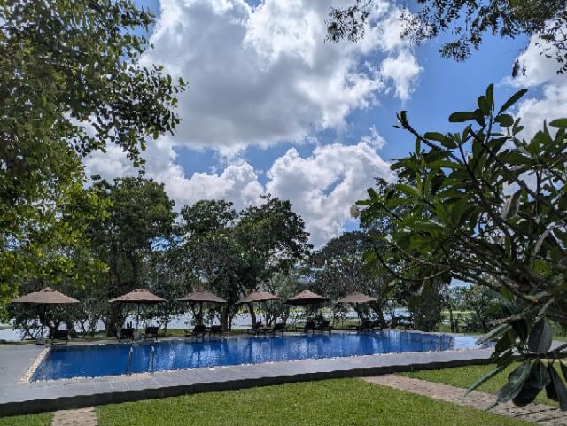 L'établissement est très joli, au calme, au bord d'un grand lac avec des singes et des oiseaux. Grande chambre propre avec un frigo et le nécessaire à thé/café, mais quelque peu impersonnelle, sans décoration. La salle de bain mériterait un petit rafraîchissement. Le personnel n'est pas très communiquant. La salle de restauration mériterait d'être refaite car avec son plafond si haut, tout résonne, même quand il y a très peu de monde. La piscine est agréable et propre, avec un grand bassin, mais il faut systématiquement demander des serviettes, et aucun coussin sur les transats en bois. Nous avons passé 3 soirées et le bar qui semble agréable avec son billard, était tout le temps fermé.