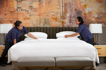 Premium bedding meets hypo-allergenic options and a pillow menu in this luxury hotel. After turndown service, blackout drapes ensure perfect slumber.