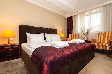 选择凯富床垫来支撑疲惫的身体,而遮光窗帘则确保您深度睡眠。穿上舒适的浴袍,享受迷你吧的美味。