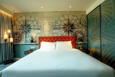 Wrapped in bathrobes, guests drift away on Select Comfort mattresses with down comforters. Each room boasts a rainfall shower, balcony, and unique decor.