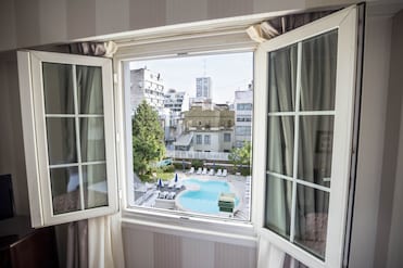 This luxury hotel features a seasonal outdoor pool where guests can take a refreshing dip. A perfect place to cool off and unwind.