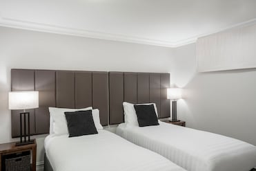 豪华的花洒淋浴与高档床上用品和舒适的浴袍相得益彰。这家豪华公寓式酒店为所有客人提供舒适的体验。