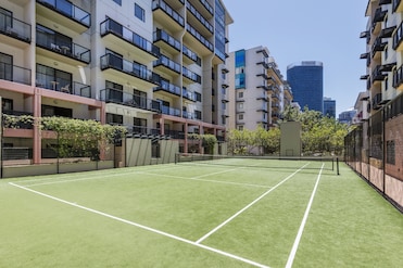 这家公寓式酒店位于商业区和市中心,提供会议室和电脑站。下班后,您可以去网球场和健身房。