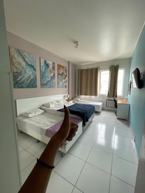 The biggest problem with the hotel is there is no maid service. One towel for 6 days, no cleaning. I saw the maids in the hallway with a stack of fresh towels and took one, hysteria ensued. Turns out that's R$5. Give it to the front desk, not sure if it reached the right place. Hotels.com messaged me "Sorry but we just rent apartments in —- and Expedia. We dont have hotel services" A hotel without hotel services (and I didn't rent an apartment on Expedia). Also, the shower leaks badly. Otherwise, fine, and an incredible, ideal location for a very cheap price. I would stay there again for the location and price, maybe buy a couple towels on the way in.