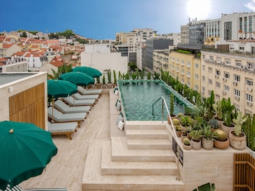 Luxury hotel with a seasonal outdoor pool connected to a shopping center in Lisbon