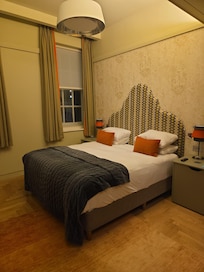 每间客房均配有带埃及棉床单的高档床上用品。遮光窗帘确保您安然入睡。24 小时客房服务可满足午夜的渴望。