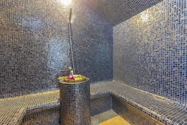 A full-service spa offers couples treatment rooms and massage services. The hotel's steam room, fitness room, and peaceful garden create a wellness sanctuary.