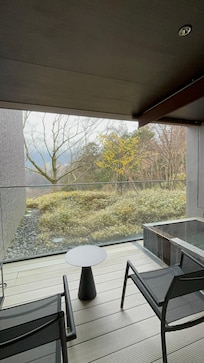 Private bath/onsen services include an indoor private bath (in communal space) and an indoor private onsen (in communal space). Public bath/onsen services include an indoor mineral hot springs (Japanese-style onsen) and a yukata (Japanese robe).