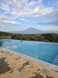The hotel has significant grounds around it and there are lots of birds. It is just outside Arusha and so much quieter and clean air, there is a lawn and pool and tables to relax and socialize while taking in a great view of Mt Meru and all the birds. The staff are all so so happy and friendly and the place is kept immaculate, with cleaning and gardening work. The food was also excellent - flavourful and well prepared. There were locals coming on weekends for family celebrations. The overall vibe is relaxed and happy.