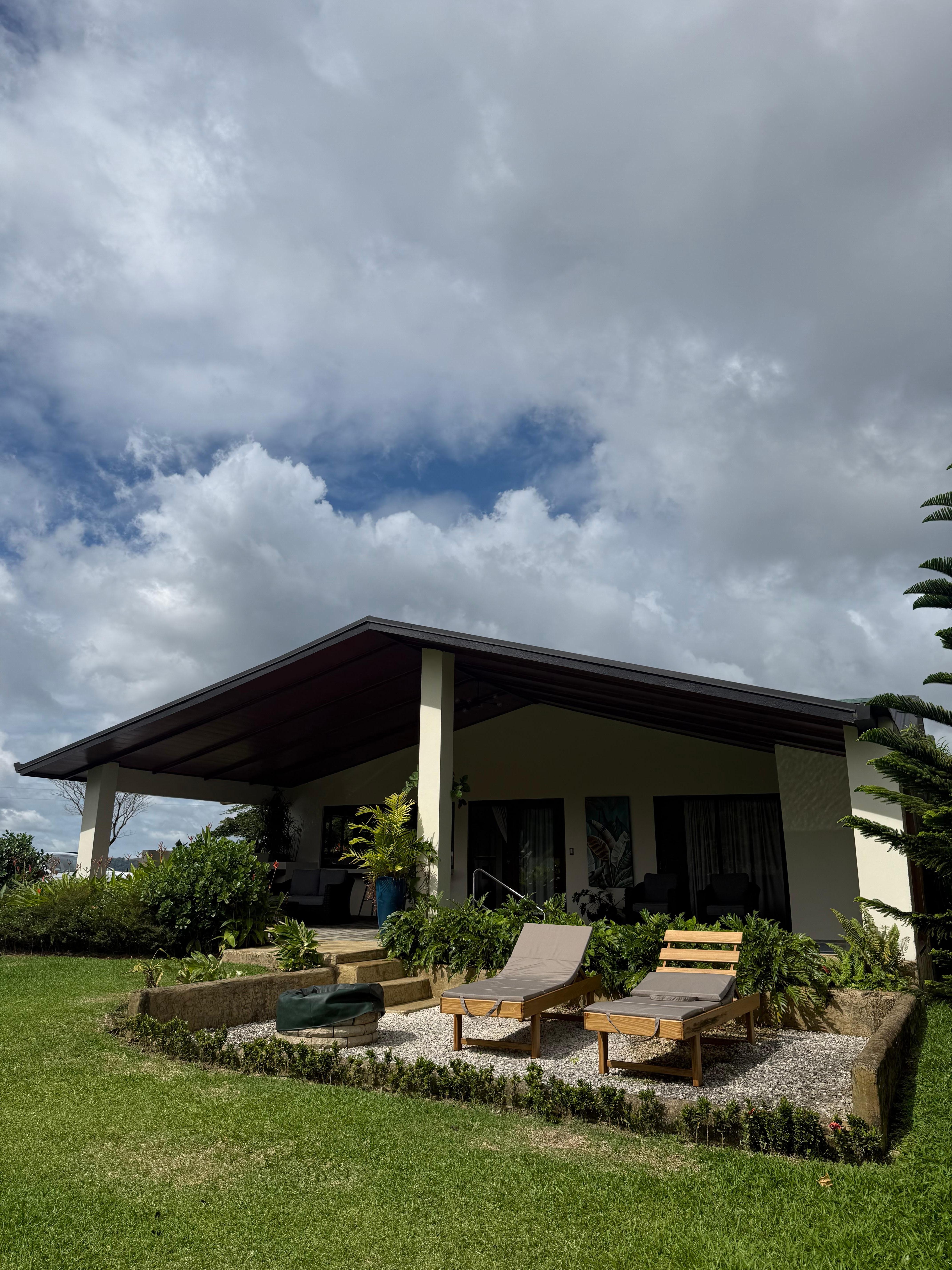 Highly recommend Villa Heliconia for location, amazing view of volcano, and access to nearby Los Lagos resort. The veranda and hot spring tub were amazing. Santiago was very responsive and arranged several tours for us (white water rafting; suspended bridges; zip lining). Tours picked up right at our villa but we still appreciated having a rental car.