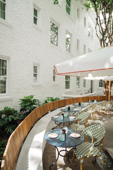 The hotel is decorated very nice. It has a nice coffee cafe. The drip coffee wasnt the best but it was free. We had a blue erry muffin and it was delicious. The room was very nice and we loved how quiet and dark it was. The bed and pillows were comfortable. We visit Atlanta quite often and well definitely stay here again.