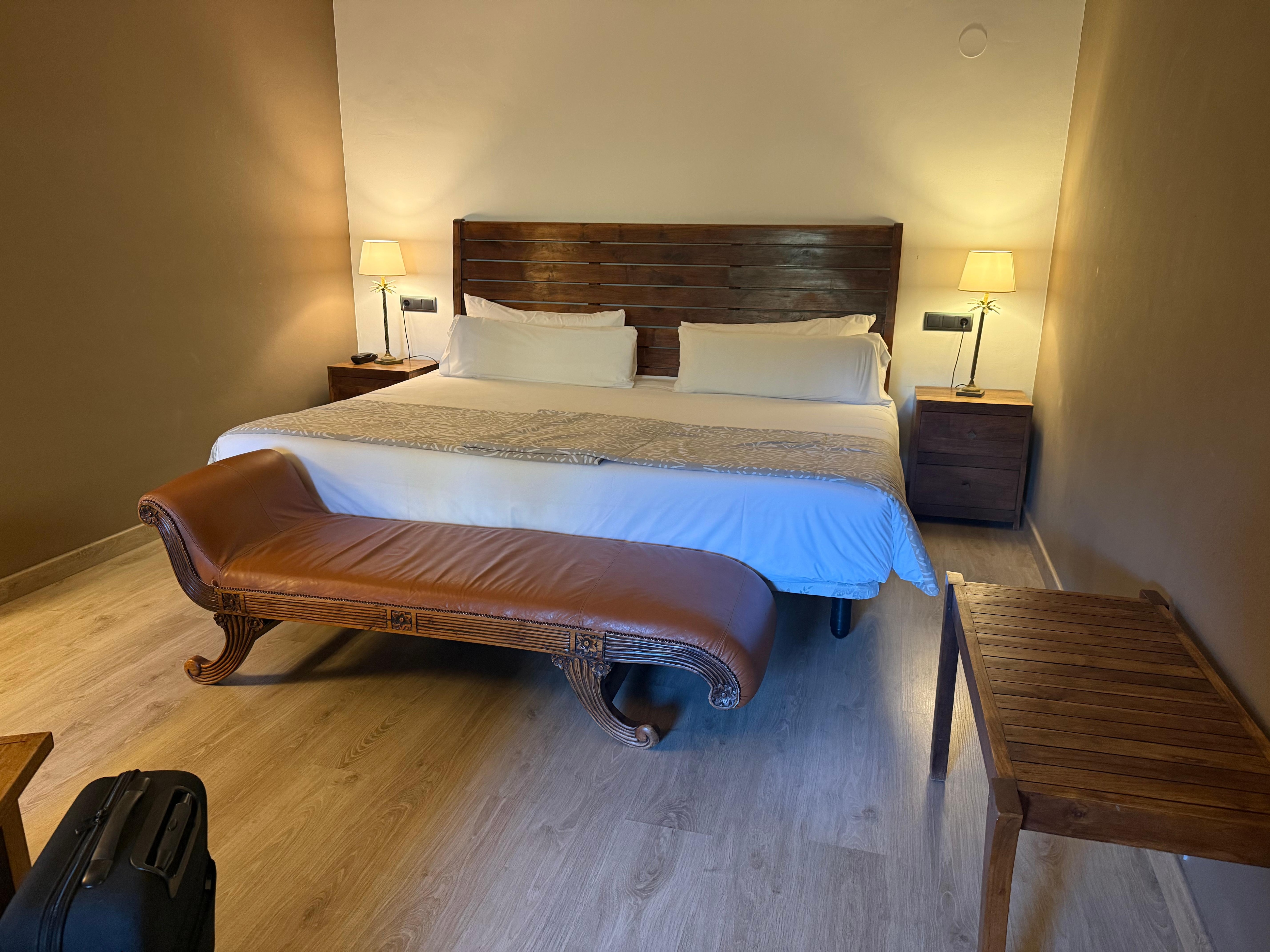 It was pleasant overall, however the beds way too hard, caused us both hip ache. Beautiful setting and gardens, but let themselves down as you walk into hotel, they have dark wall ahead with bland restaurant behind that was like a empty store room, it used this to exit and enter to the pool and it totally spoils the lobby/ground floor of the beautiful building, a truly bizzare design decision? Our hot tub didnt work properly and the engineer didn't seem to care to sort it, our toilet cystern dripped our entire stay despite telling them on arrival and we had to change the fridge day 1 as that didn't work either, the towel rail was not secured to the wall which I also advised day 1, again they did nothing. The thing that grated me the most personally was not being able to get a draught beer, they only sell small bottles!? The lunch by the pool is more 'a la carte', when in reality for a summer 'by the pool' lunch, I'm sure most people would prefer a salad or a sandwich or arguably more relaxed lunch time options. The pool staff were not well equiped/trained, if in the height of tourist summer trade, in a typical family resort, and if you charge £200 + pn, then you need to make sure your staff are on point and offer great service, and selfishly I think they should be able to at least communcate the basics in English as this is the language that most europeans can mutally understand. Overall it wasnt bad, but I wont go back.