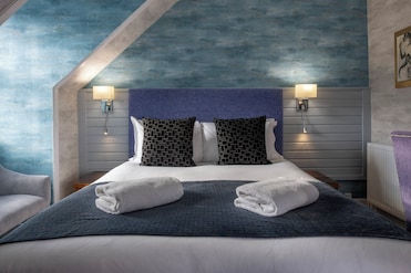 Wrapped in cozy bathrobes, guests slumber on premium bedding in rooms with custom decor. Champagne service and minibars enhance each unique stay.