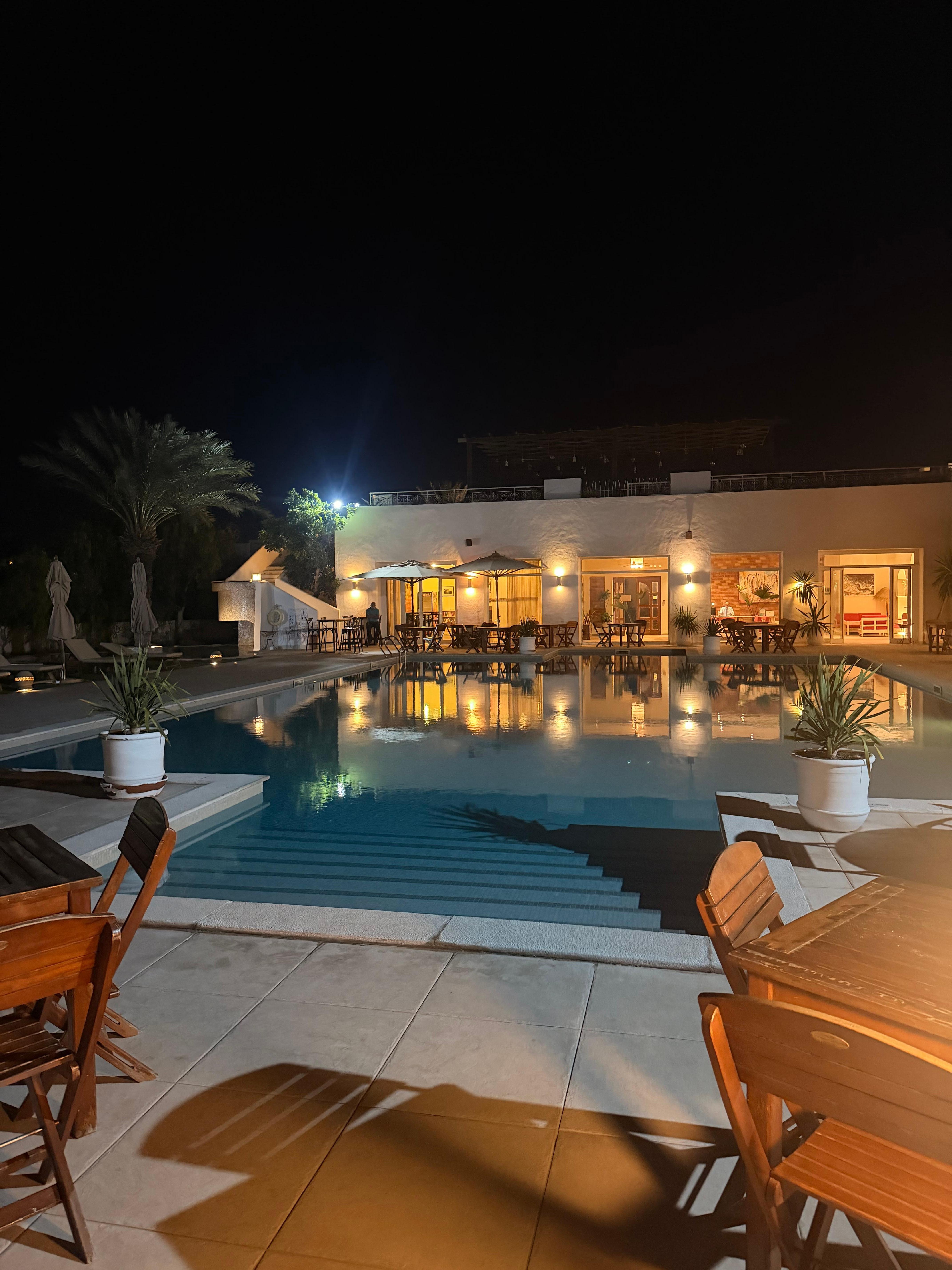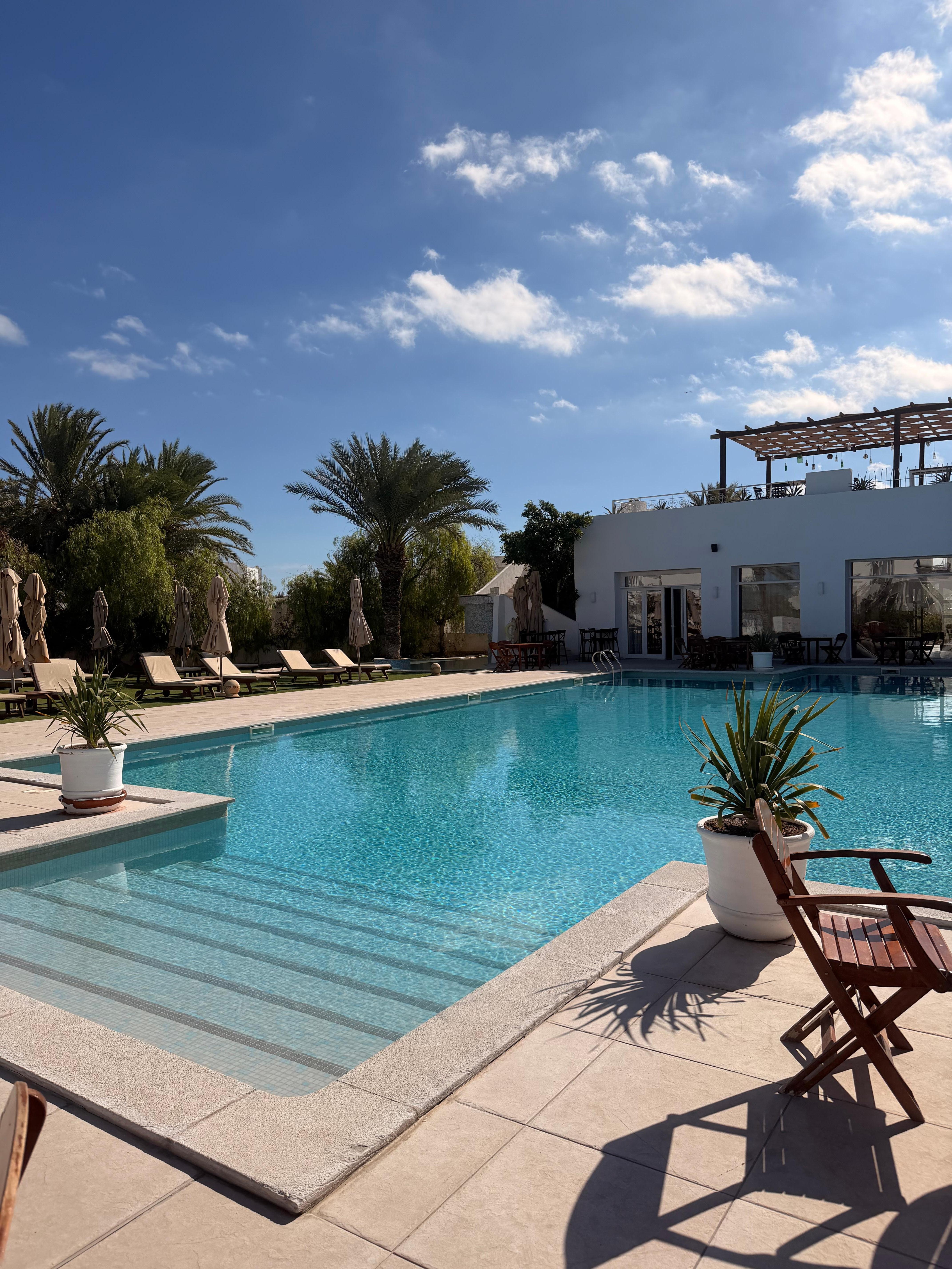 杰尔巴米敦海滩酒店,设有室外游泳池和餐厅
