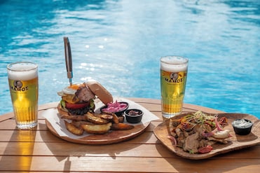 This hotel features a seasonal outdoor pool and a children's pool. The pool area has loungers, umbrellas, and a refreshing poolside bar.