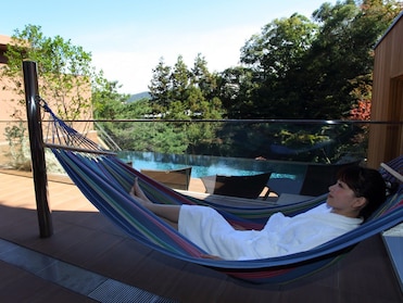 全方位服务的水疗中心提供芳香疗法、面部护理和反射疗法。矿物温泉、桑拿和花园在山中营造出一个健康天堂。