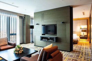 My wife and I wanted to visit Tianjin and I picked the Hyatt. We wanted a club floor with club amenities, a gym, and a swimming pool. We were delighted with everything. The hotel is only about 20 minutes from the airport and I could actually see the tip of the airport terminal from our room. Our room had the biggest shower I have seen. The breakfast was very good, with stations for western food, eastern food, and a large bread station between. The pool/locker area was quite clean and the water was very clear. The pool had four lanes, pretty large for a hotel pool. The well-equipped gym was adjacent to the pool, separated by windows. I don't like swimming with lots of other people, so I could check the pool and choose an elliptical machine instead of swimming, which I did one time. There were free weights along with machines.