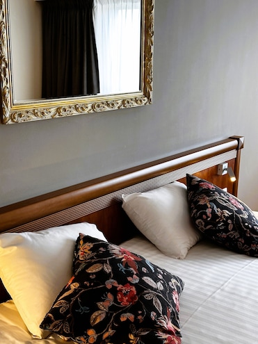 Clean and tidy room. Hotel in a quiet little street, but near centre. Limited street parkking.