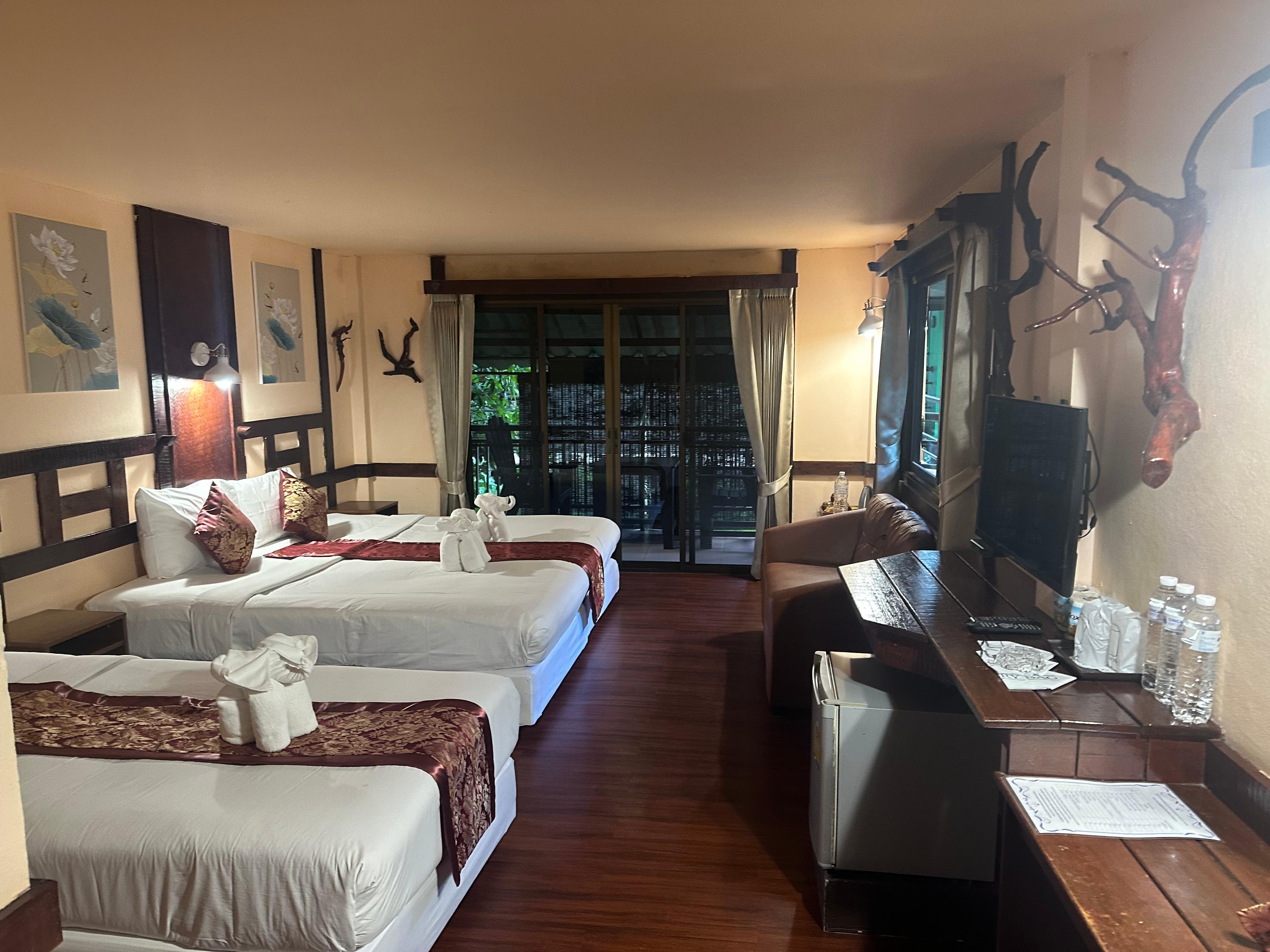This property is in a great location within Khao Sok, and just a stone throw from the National Park entrance. Khao Sok itself is like a one horse street, more like a strip, that houses all of the accommodation, restaurants and bars. The advantage is that everywhere was easily accessible on foot. The staff at the hotel were extremely friendly, polite and accommodating. Our room was overlooking the river, where we saw monkeys swinging through the trees in the morning - it was an amazing setting and gave the feeling of being right in the middle of the jungle. The way all of the rooms are set out is very clever, it gives the feeling of real individuality and seclusion. We ate breakfast here, which is all waiter service. You get to choose set items from the menu. The room had a fridge, but no safe. The room size was good, with an area for dining. The bed was comfortable and overall, was more than adequate for our needs on a 3 night stay. We would definitely consider staying here again should we revisit Khao Sok in the future.