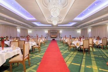 The hotel's restaurant, cafe, and bar satisfy every craving. Couples can indulge in private dining after enjoying a buffet breakfast.