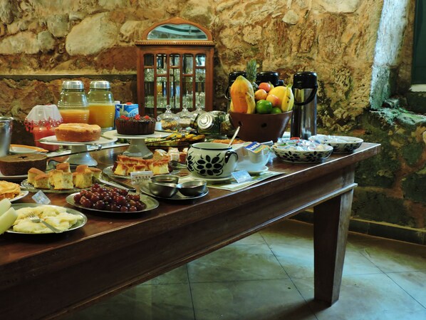 Ótima localização, junto à praça principal, pode-se ir a pé aos principais bares, restaurantes e comércio (fica longe só da estação da Maria Fumaça). Ótimo café da manhã com comidas típicas como o famoso pão de queijo mineiro e o arroz doce. Boa limpeza das instalações. O staf foi muito gentil e atencioso! O senão fica por conta de ser uma casa antiga, embora reformada e bem conservada, apresenta certos inconvenientes como janelas sem vidros e com gretas que permitem a entrada de friagem e no nosso quarto tinha um inesperado maleiro no armário, aberto, comunicando com o telhado e sem ter como trancá-lo por fora. Por ele ouve-se o barulho da caixa d’água todo tempo. Certamente hospedaria novamente nessa pousada, mas definitivamente, em outro quarto.