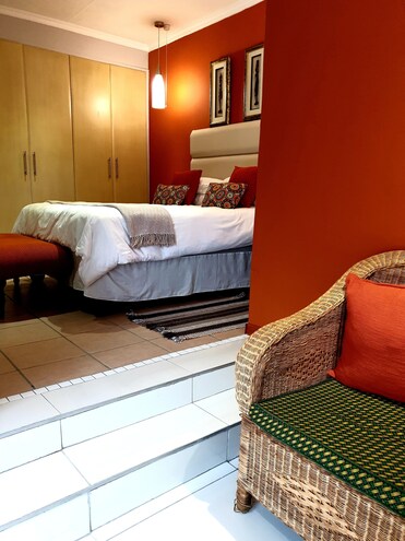 埃及棉床单和优质防过敏床上用品营造完美的睡眠环境。雨淋式淋浴和遮光窗帘增强了精心设计的装饰效果。