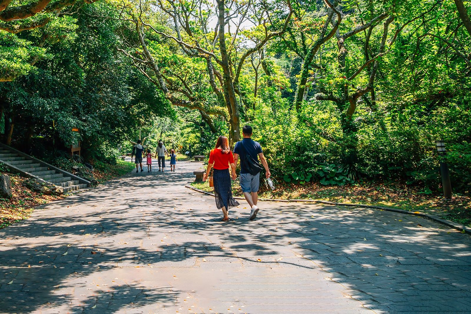 Walk forested paths among tropical plants
