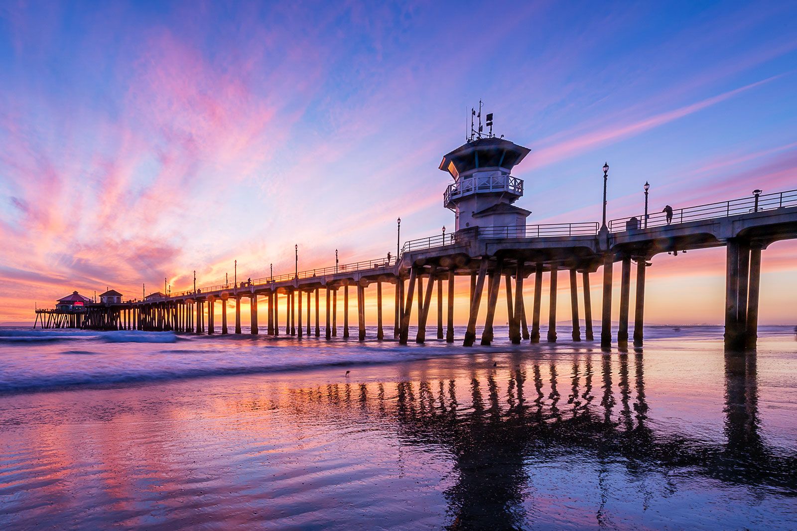 One of the surf capitals of the world, Huntington Beach has 10 miles (16 km) of coastline and waves for every skill level. The city is packed with surf schools that offer solo and group classes for first-time surfers as well as experienced surfers looking to up their game.
