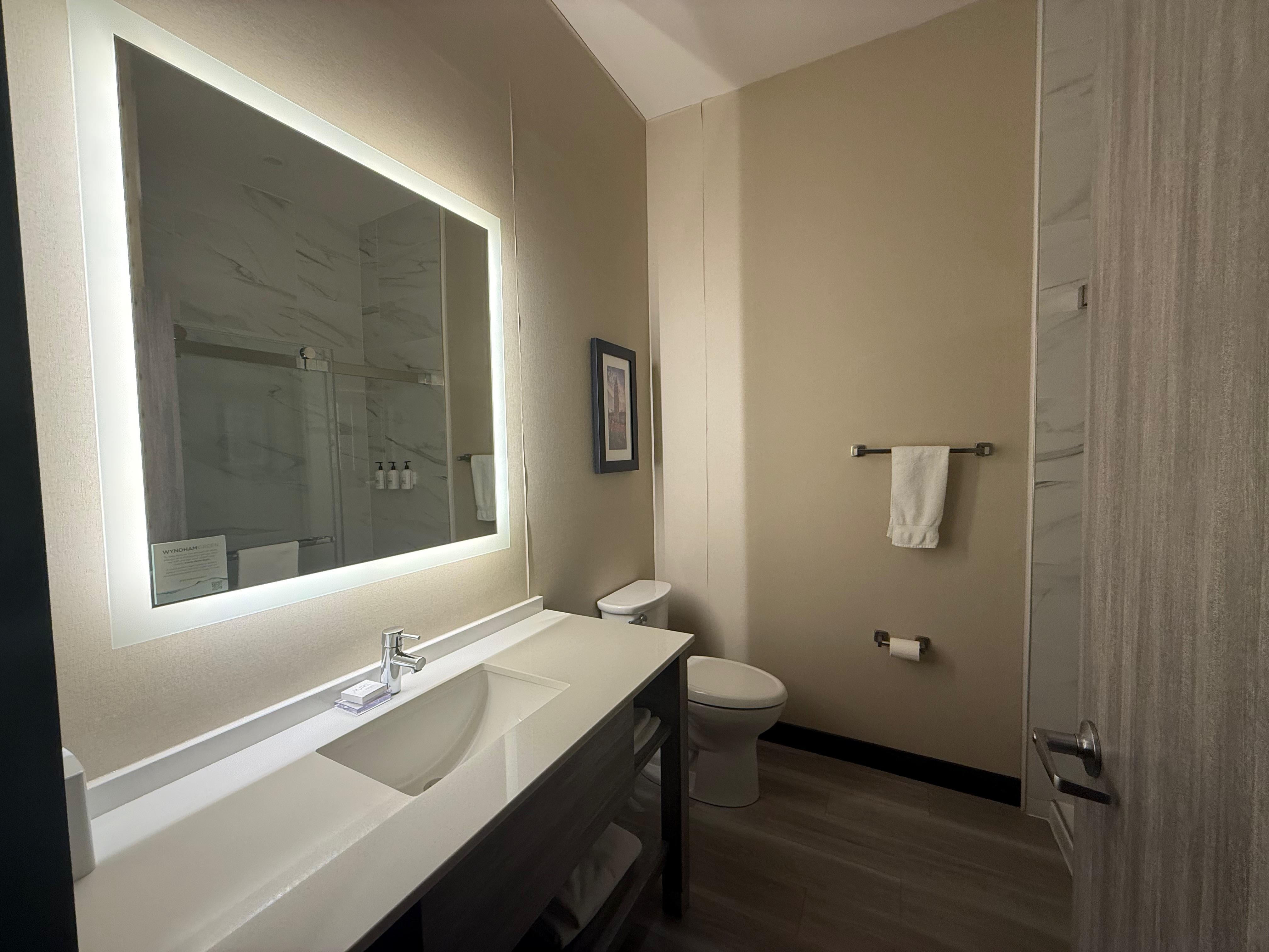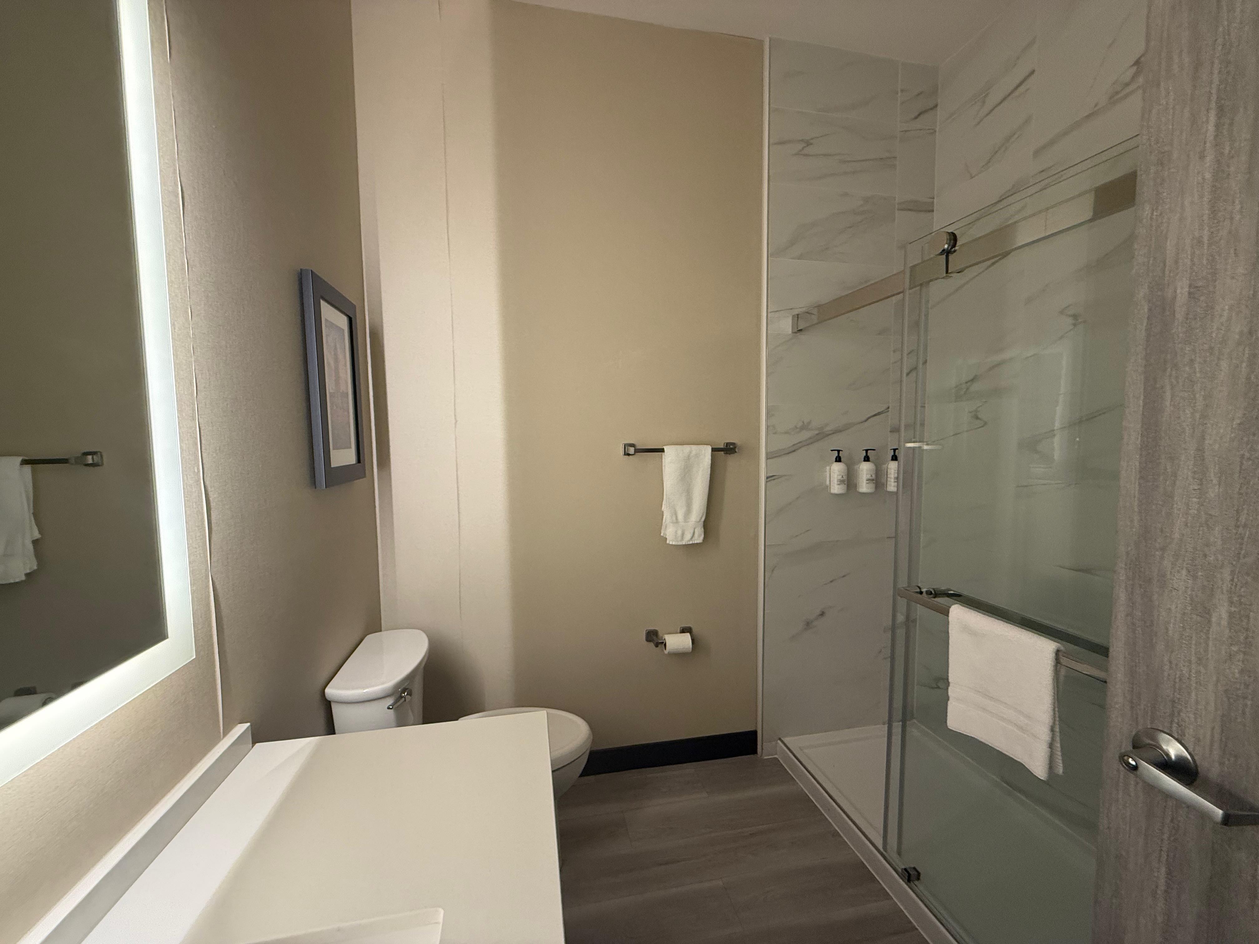 Room was spotless and the lobby was exceptionally welcoming. The staff at the front desk greeted us immediately and we used quick checkin beofre we arrived.