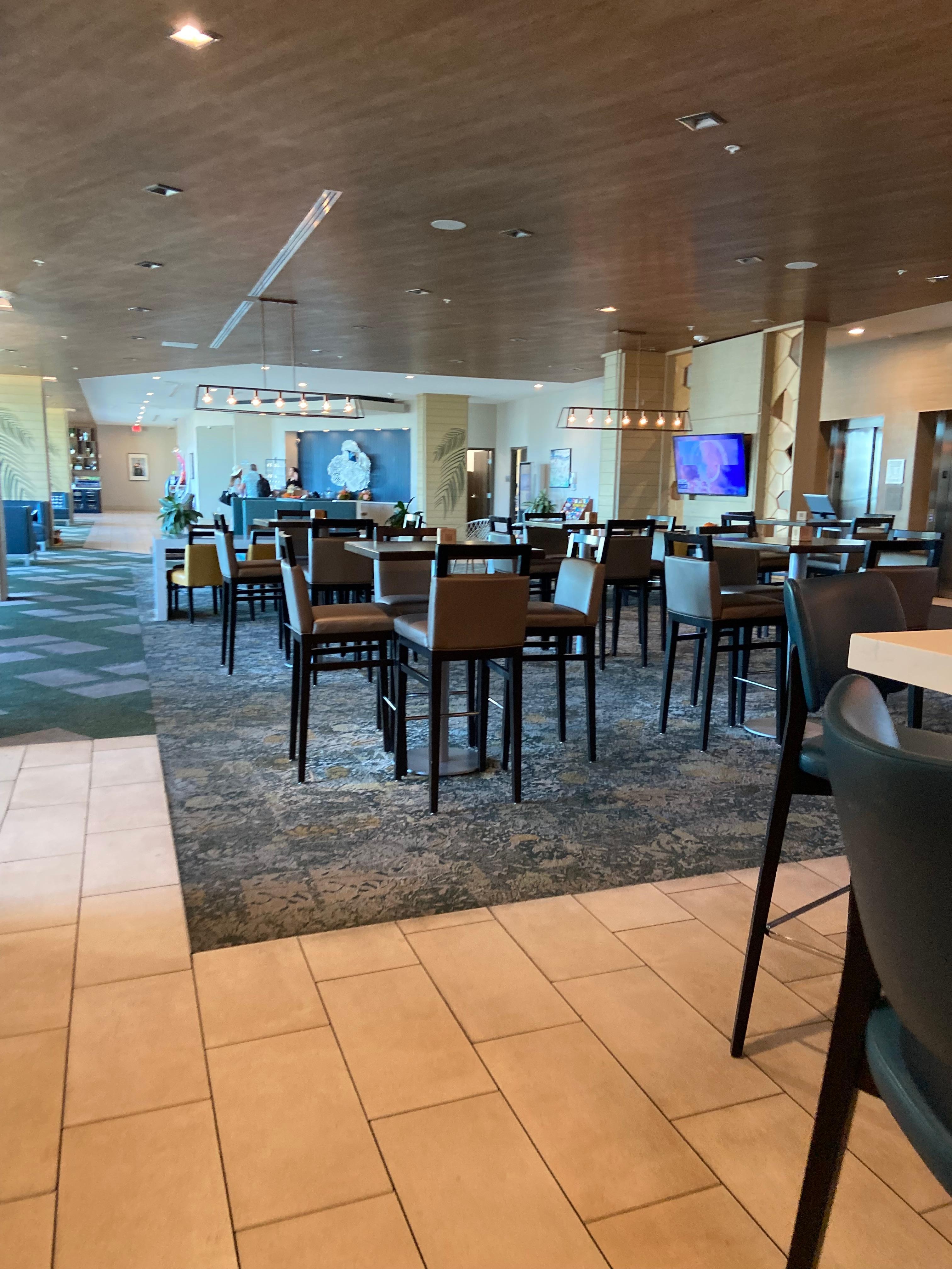 The Cambria hotel was in a great location. Check in was quick and easy. There were many amenties and places within walking distance. We walked every morning and enjoyed exploring the area. The beach was a block away. Rooms were very comfortable & very clean. We really enjoyed the rooftop pool, hot soaking tub (disappointed it wasn't jetted), pool & bar. We had breakfast and dinner at the hotel a few times. The server on the weekend was fantastic - fast, friendly, efficient, great personality & service. Also, all the bartenders inside and pool side were fantastic with drinks and service. We found the food was well prepared & tasty. There was one unsatisfactory incident with the food and the manager apologised and fixed it immediately. The breakfast servers during the week seemed as if they did not want to be there. They were not quick, efficient or good with their service. They were slow/forgetful to provide utensils, refill coffee, etc. Overall, the good outweighed the bad. Obviously there is always room for improvement, but we would definately stay at the Cambria agan and recommend to anyone.
