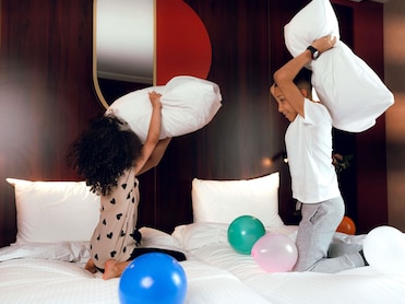 客人裹着舒适的浴袍,在配有高档床上用品的双层床垫上安然入睡。枕头菜单和夜床服务增强了奢华体验。