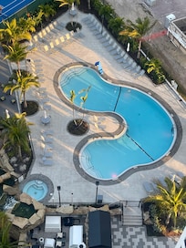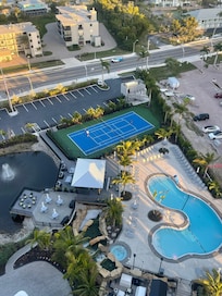 Beautiful full view of the ocean and its stunning sunsets. Clean white sand beaches. Perfect location away from bars and busy but close enough to get there by trolley for a night out. Free bike rental. Nice pool area. Stocked kitchen. Grills. Groceries near by. Comfortable beds. Spacious. Friendly staff.