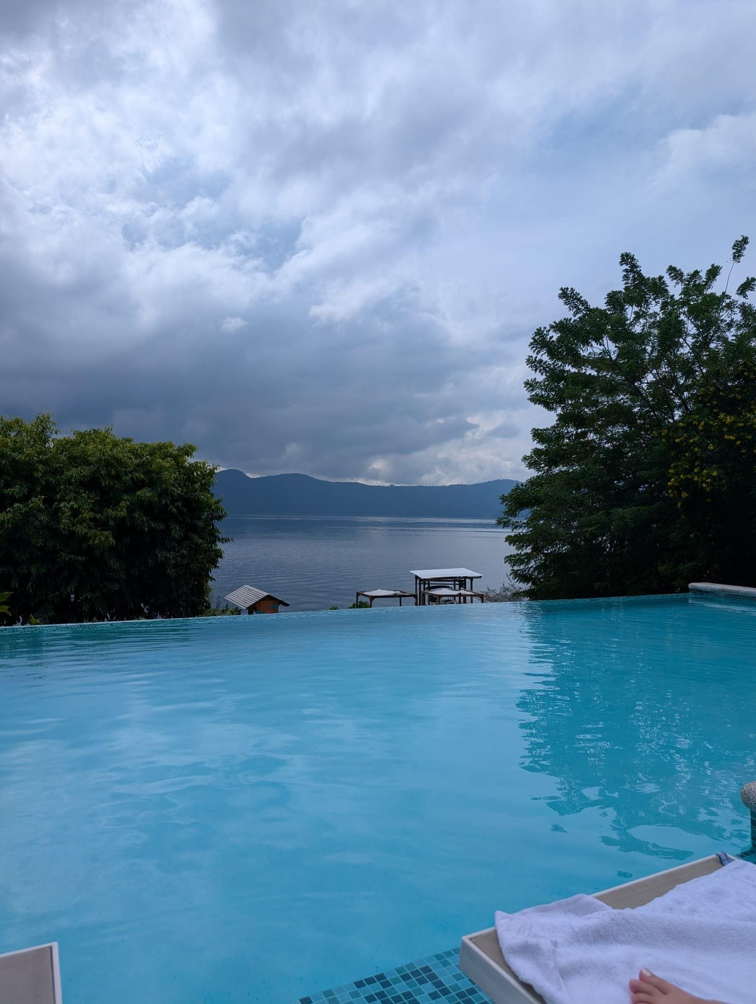The view was amazing! Lake and windows truly gorgeous. Cool shower, TV with Netflix, interesting capsule rooms. I’d say the private pool is tiny and not really worth it. The property was so fun to walk around, as it had restaurants, mini golf, playground, fruit trees, trampoline, other pools, etc.