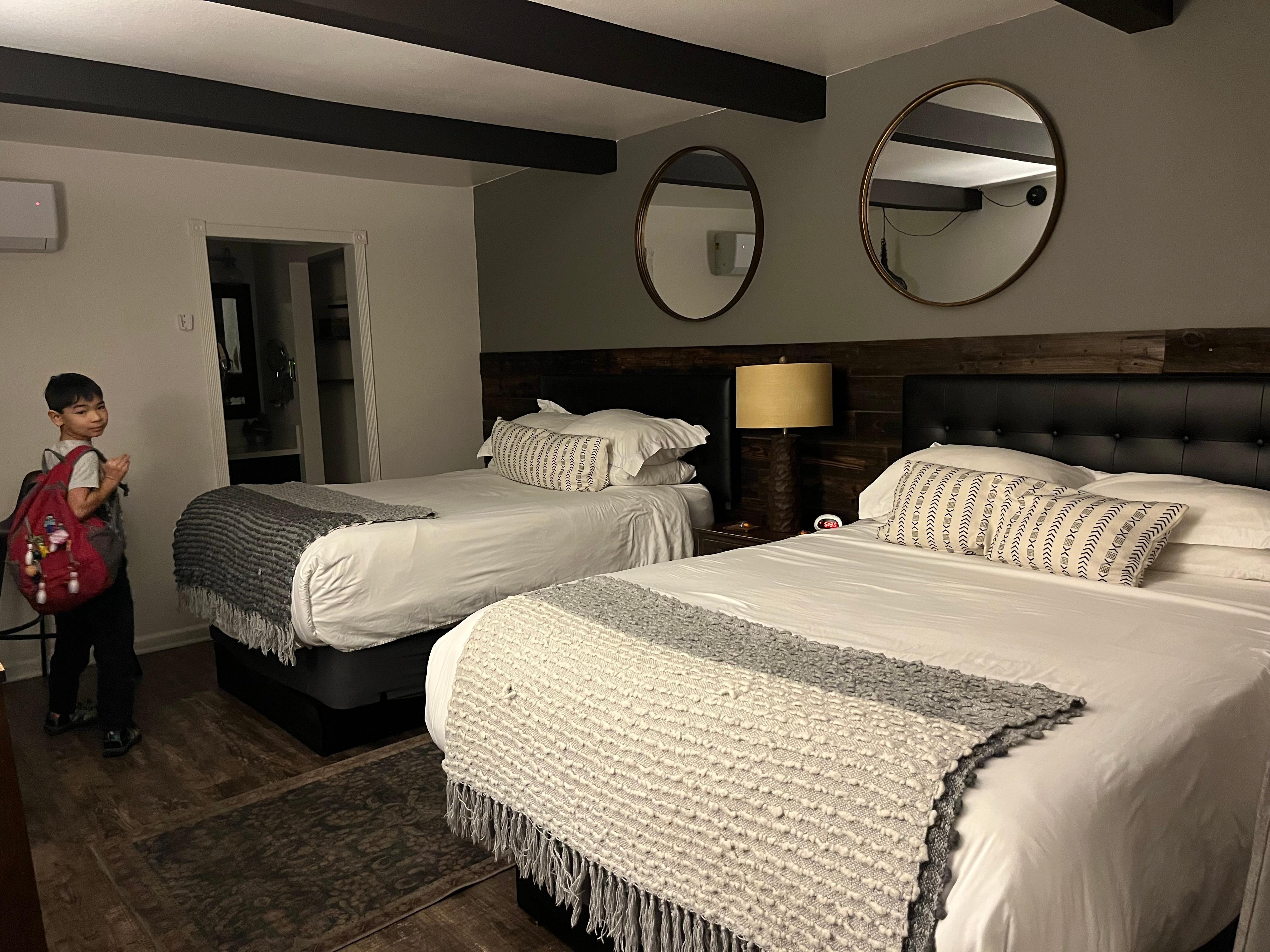 Stayed for 1 night. Great communication with the office. They asked when I would arrive and they left the key in a lockbox. The office closes at 5pm, but they are available via text. Room was nice and cozy. Popcorn, coffee, hot cocoa, bottled water, soap, shampoo, conditioner, makeup wipes, and shower caps available in the room. Bathroom is compact, but everything works great. We stayed in the winter so it got a little cold at night. Room has a heater/AC wall unit. Remote was missing, but staff brought us a replacement even though it was 9pm. Ate at Zorros a block away. 10% off coupon in the room, but I forgot to use it. Loud freeway noise, but they give you earplugs. The walls are thin and I could hear the people in the room next door talking. Overall, great stay!