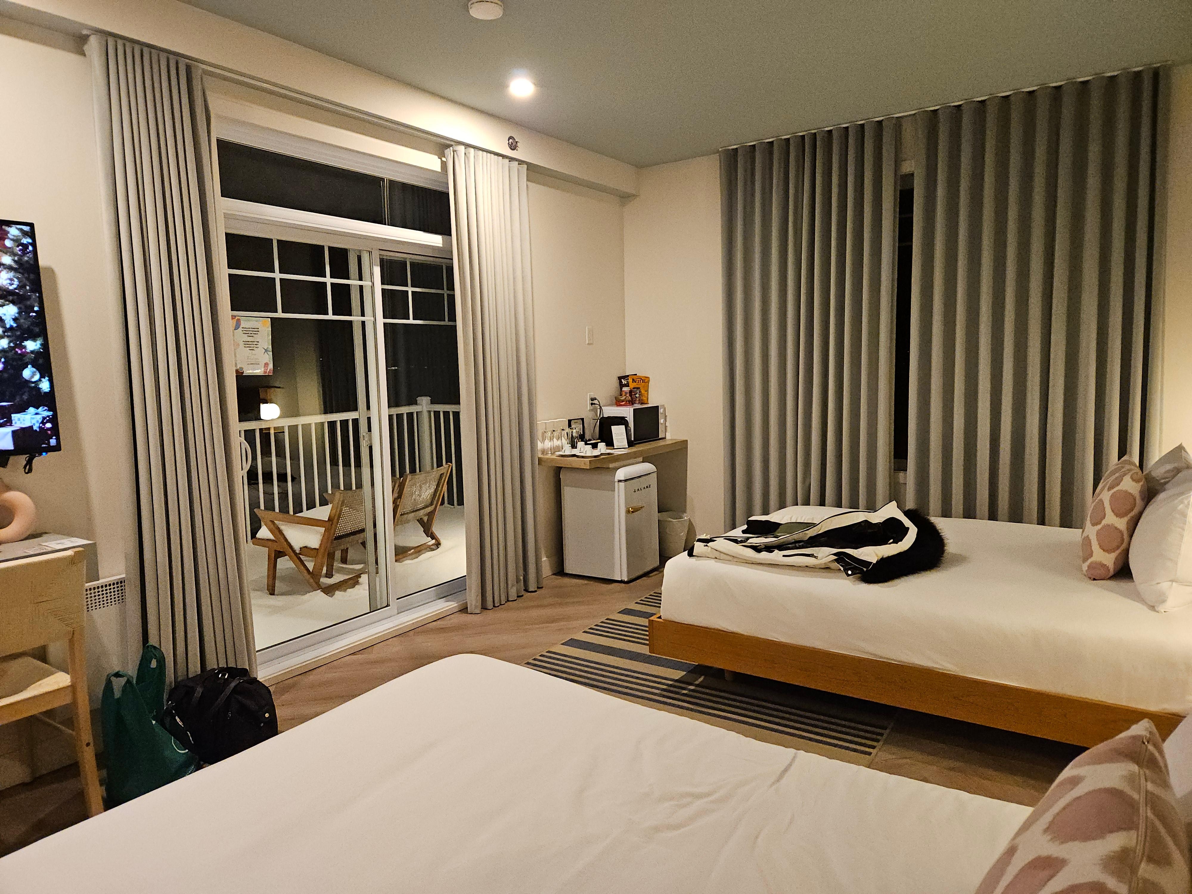 Petit séjour d’une nuit en moto à Venise en Québec, l’hôtel était plus que parfait, le jeune homme à l’accueil a été très gentil, très souriant, il a répondu à nos demandes avec le sourire. Merci. Nous avions un petit chalet 3 chambres, avec cuusinette, tout était exceptionnel. Je recommande cet hôtel. Belle piscine. J’y retournerai. Merci