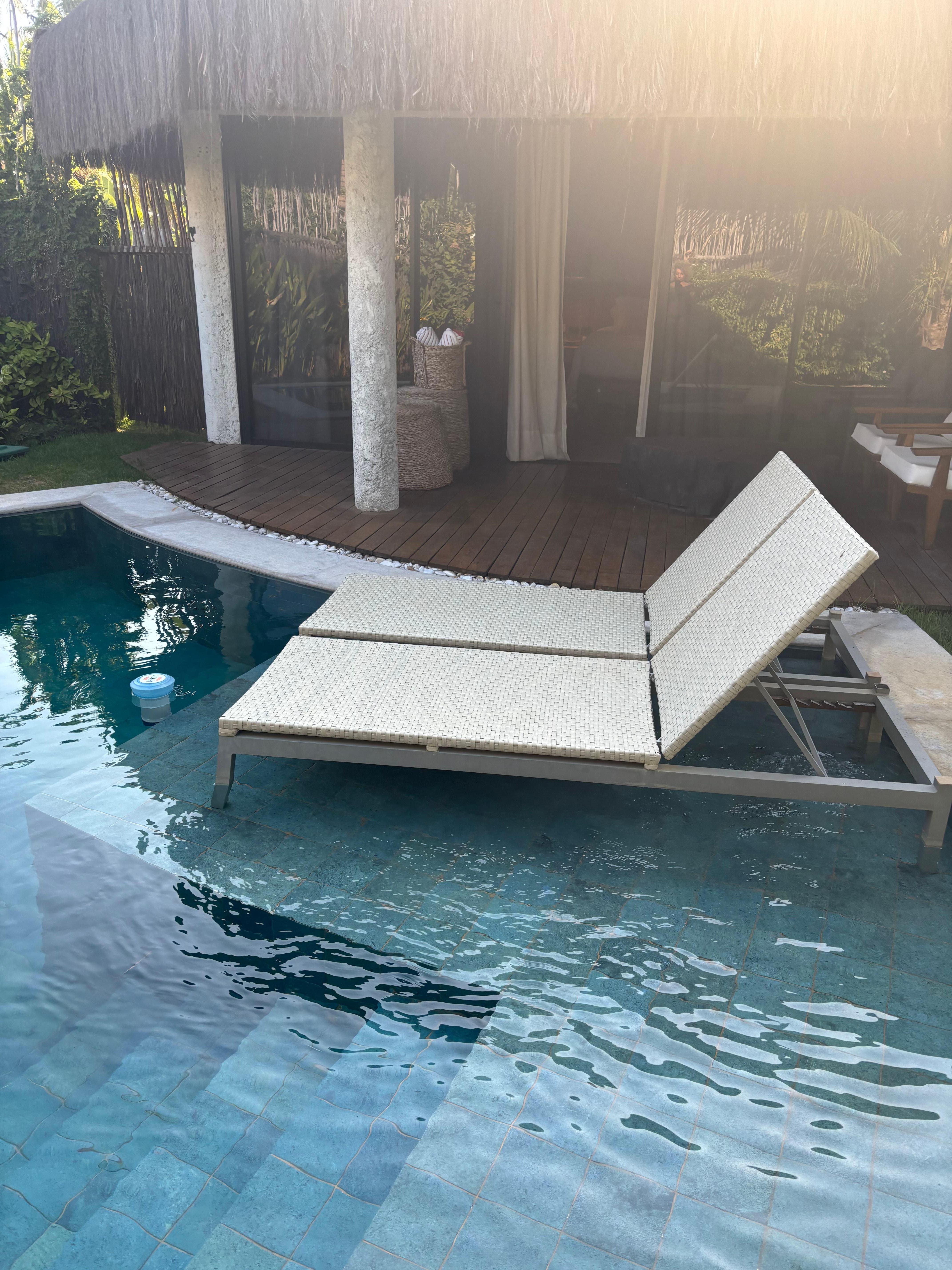 Stupenda la zona esterna al bungalow con piscina privata sempre pulita e privacy totale.