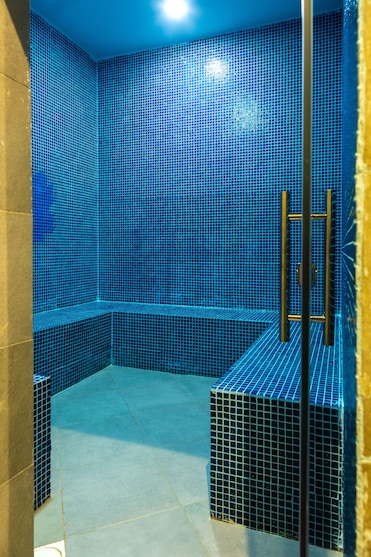 全方位服务的水疗中心在宁静的治疗室内提供舒缓的深层组织按摩。蒸汽房和健身设施与宁静的花园环境相得益彰。