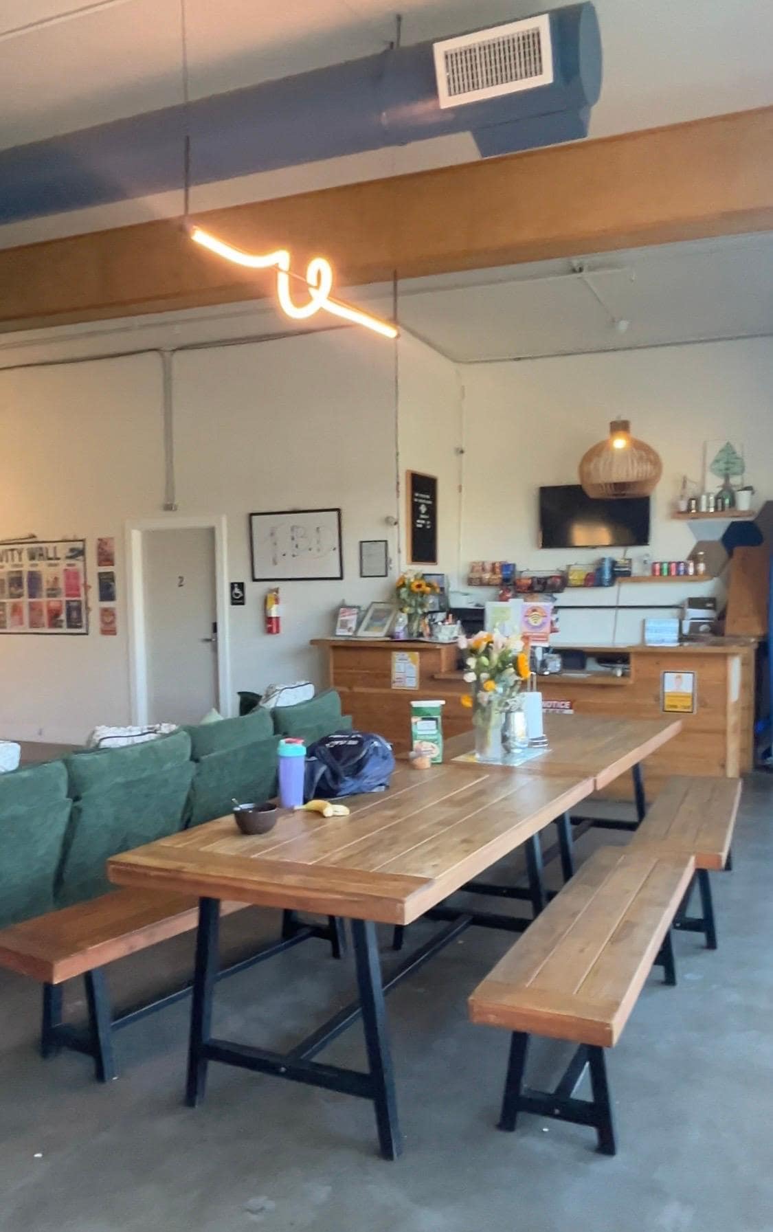 My husband was in town just to drop of some of my son's belongings and needed a place to rest before driving back home...literally less than an 24 hour trip. Hotels were either sold out, super far or ridiculously priced at over $400/night. I saw the hostel & he said he loved the idea...meeting new people, having a place to sleep, being downtown and you can't beat the rate. I did get him the private bedroom because he snores. Eeek, don't tell him I shared that on the internet! He checked in rather late at 9pm and was welcomed in by Hailey. She shared the rules, gave him a quick tour of the hostel and he left his backpack in his room and went out to find some dinner. He shared that it was such a relaxed environment: people working on their laptops, chatting by the fire pit, cooking up a meal, and sharing a beer. When he came back most people had gone to bed. He used the restroom which he said were spotless, went to bed and slept all night. He commented that the hostel was super clean, trendy, and really had a great atmosphere. Everything is so close by and while the crowd was younger than him, he said it's definitely a place he'd come back to and said he thinks I'd love it too!