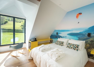 每间客房均拥有独特的装饰,配有私人泳池和遮光窗帘。享受舒适的室内按摩,舒缓酸痛的肌肉。