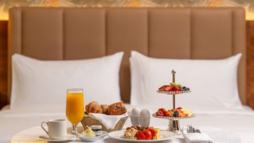 Hotel guestrooms feature plush bathrobes and premium bedding. Customized comfort awaits with a pillow menu, while blackout drapes ensure uninterrupted slumber.