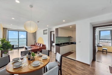 Experience oceanfront luxury at S Lux Apartment Virgo Nha Trang, where you can unwind with a refreshing cocktail at the swim-up bar or indulge in rejuvenating treatments. Families will love the playground and kids' pool, while coworking spaces keep professionals connected.