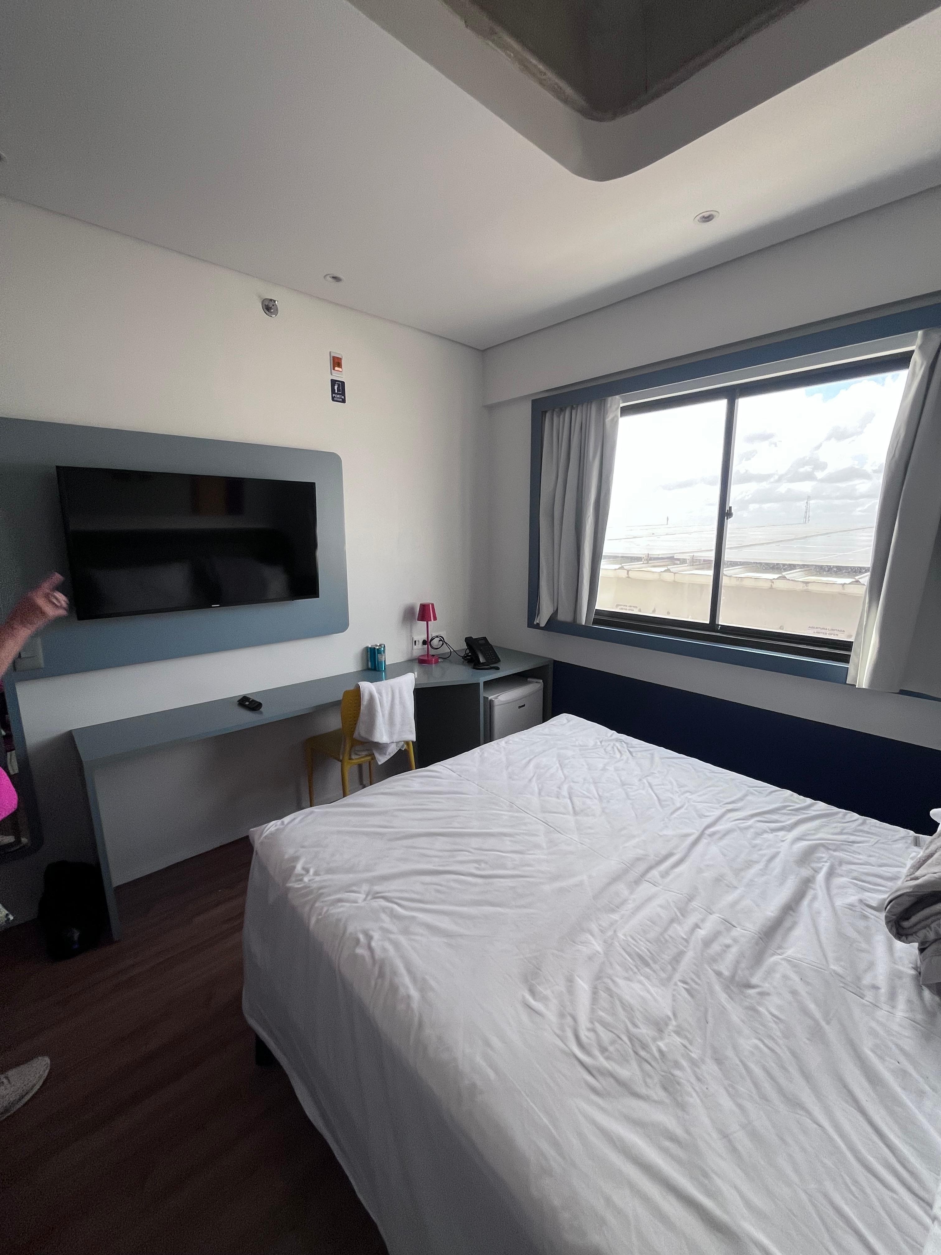 O quarto casal: padrão Ibis, muito pequeno, embora novo e limpo. Tem frigobar, uma TV 40 pol, uma prateleira e uma cadeira. A refrigeração é muito boa. Vista (no meu caso no 7o andar) era nenhuma, então prefira do 8o para cima. A melhor parte: o banheiro, amplo, água abundante e com temperatura controlada. Café da manhã: repetitivo para quem fica vários dias , com muitas opções de carboidratos , com o básico em proteínas (queijo e ovos) e sem muitas opções diet, mas aceitável. Sugiro diminuir o açúcar ou expor opções sem açúcar ou baixo açúcar como alternativa aos mais velhos. Obs: observei que a cozinha responde rapidamente a comentários feitos nas redes sociais. Isso é positivo. Algumas observações feitas no maps foram atendidas pela cozinha. Colocaram algumas opções com baixo açúcar, colocaram leite quente fora da máquina , mais opções de frutas, sementes… Continuem assim. Serviço: o pessoal da recepção (embora não tenham me falado nada sobre o quarto, vista etc, se limitando a definir o quarto) e atendentes do café da manhã e lanche noturno muito gentis. Uma moça de óculos que atende à noite no restaurante sempre atenciosa, proativa e gentil. Estacionamento: o mesmo do shopping Giga Mall, mas cuidado, pois só serve a entrada térrea, então desça pela rua Pe. Pedro de Alencar e entre no estacionamento um pouco antes da entrada principal do hotel (waze: https://waze.com/ul/h7pkdhjcx9).