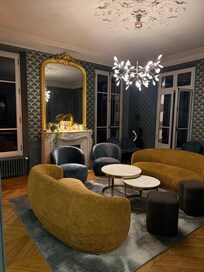 La bâtisse est entièrement rénovée à neuf, la décoration est magnifique, de très haute qualité, avec beaucoup de goût. Les pièces à vivre sont spacieuses et très agréables, on s’y sent tout de suite bien.