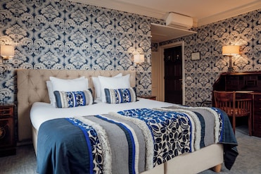 引人注目的装饰欢迎客人来到他们的房间。遮光窗帘确保您安然入睡,而夜床服务和 24 小时餐饮则增添了优雅的氛围。