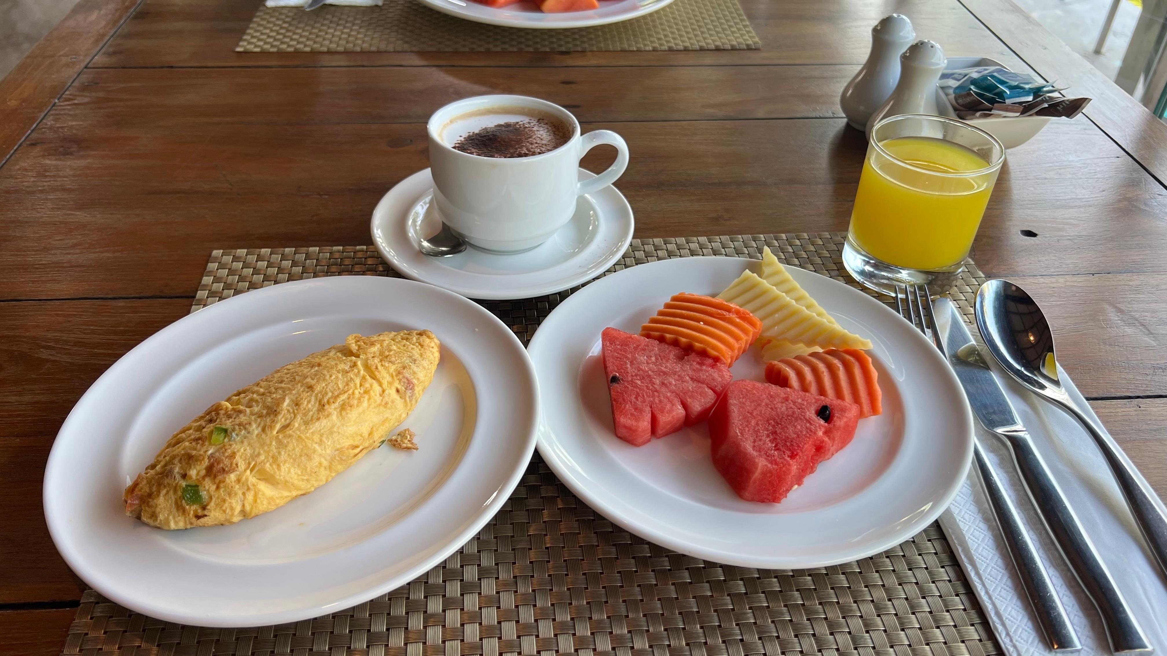 Fruit selection: Limited variation. Mango was missing entirely, and pineapple and dragon fruit were only available on a few mornings.
