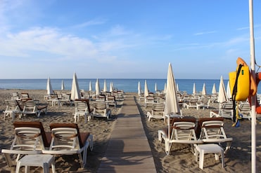 Underbart läge precis vid havet, bara att gå ut direkt till Kleopatrastranden.