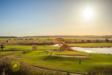 Our apartment had a beautiful golf course view. The complex is pretty quiet, not in the middle of town (plus and con) Due to the tiled floors the apartments are quite noisy at times.