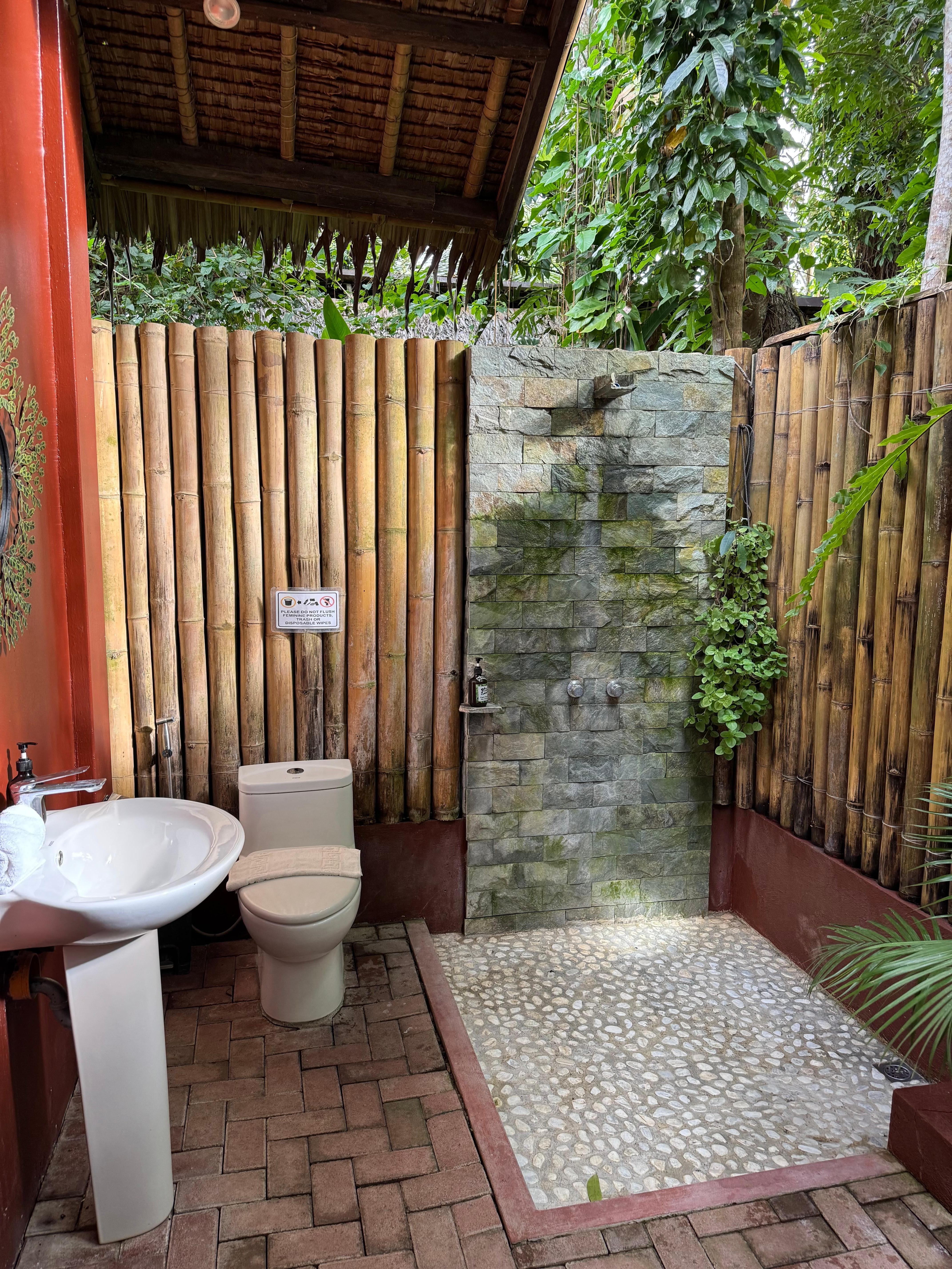 Very nice and clean place. Excellent open air bathroom